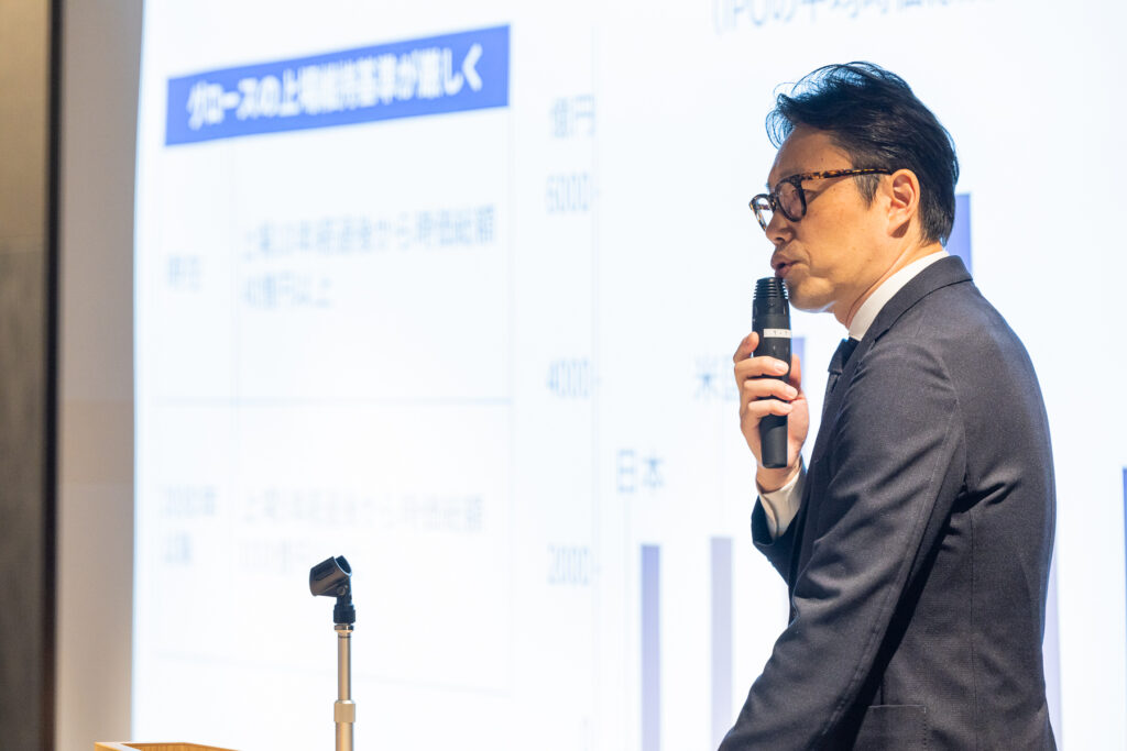 冒頭、代表パートナーの藤田より、国内外の投資環境の変化と、CJSFが推進する地域スタートアップエコシステムの現状について発表。